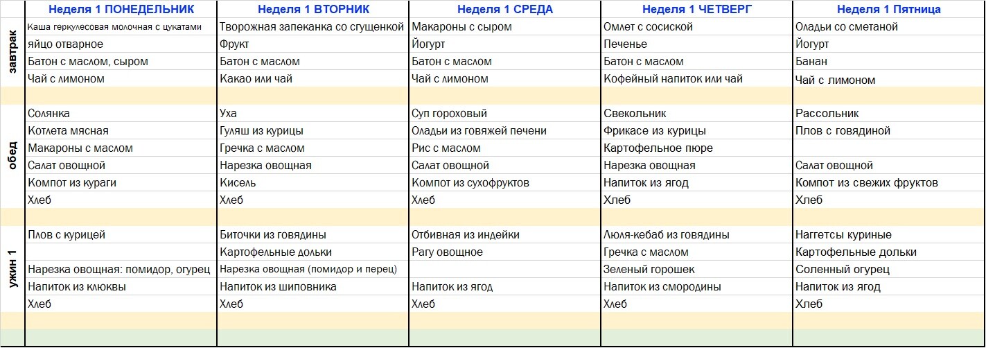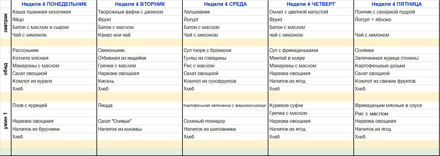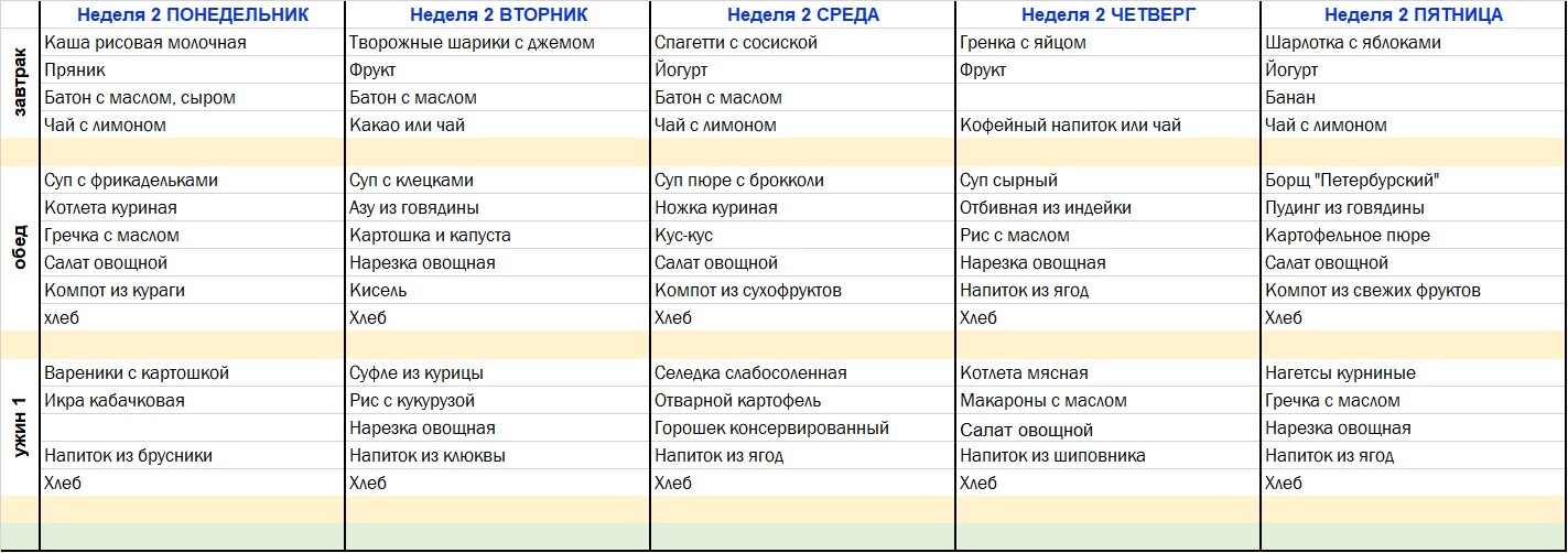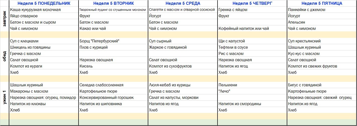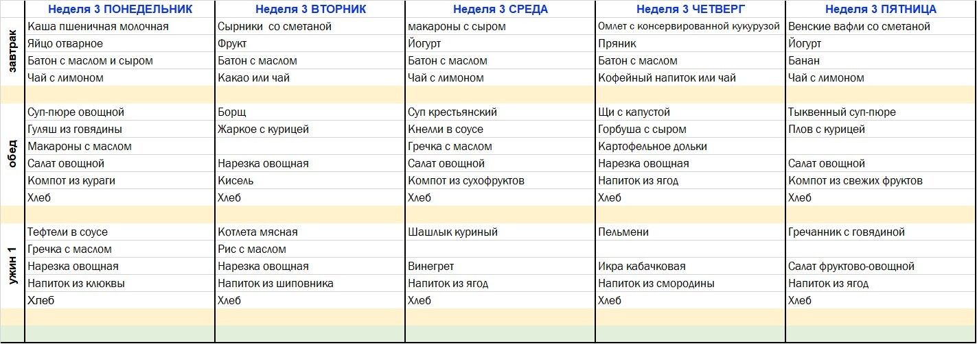 | Ужин | 16.40-17.00 | Ужин | 17.00-17.20 | |